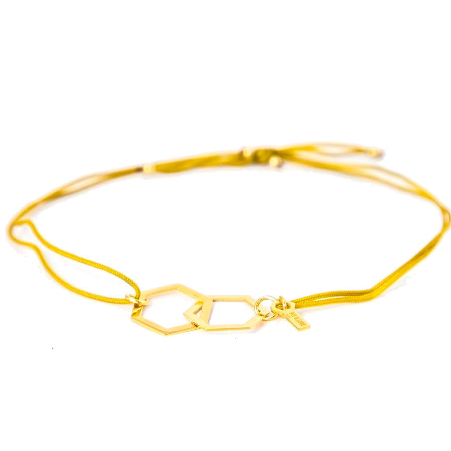 Bransoletka hexagon srebro złocone, złoty kolor sznureczka