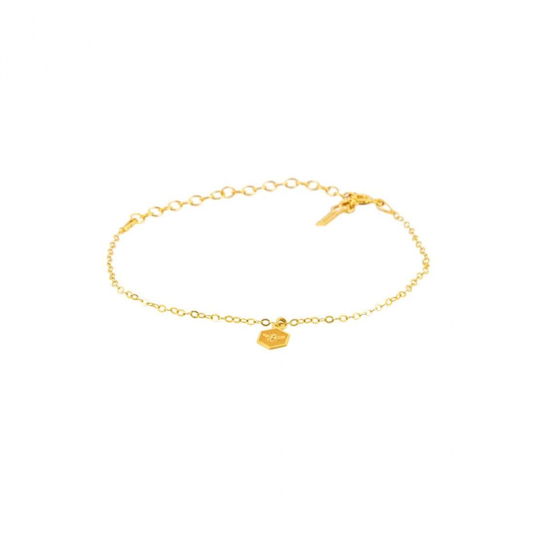 Biżuteria/ Bransoletka z zawieszką pszczoła na heksagonie srebro złocone