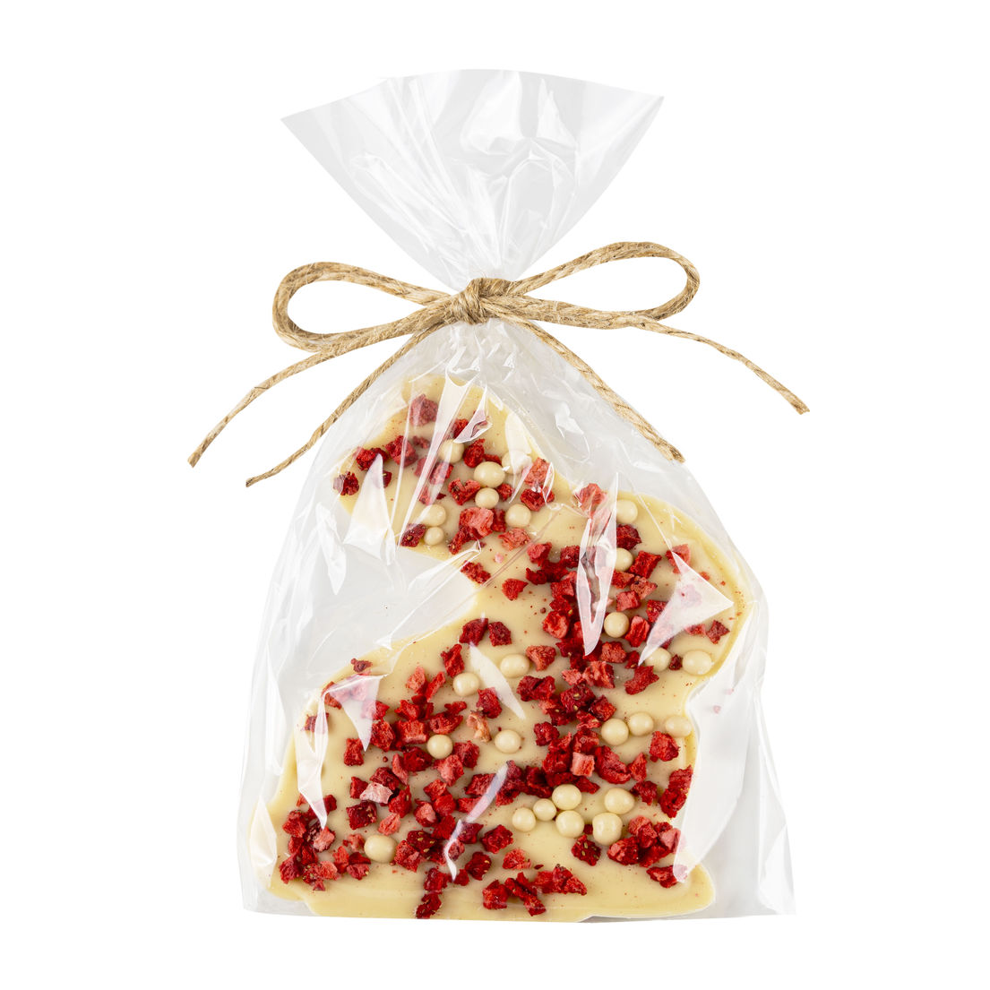 Pyszny smak i aromat belgijskiej białej czekolady w kształcie zajączka z dodatkiem miodu wielokwiatowego z kawałkami truskawek oraz płatków zbożowych – crispy to najsłodszy i najzdrowszy prezent wielkanocny.  Czekolada poprawia naszą koncentrację i skutecznie wpływa na minimalizację wystąpienia chorób układu krążenia, a antyoksydanty w nim zawarte likwidują skutecznie wolne rodniki. Truskawki są źródłem licznych witamin takich jak C, E, B1 i B6.  Naturalnie, zdrowo i słodko.
