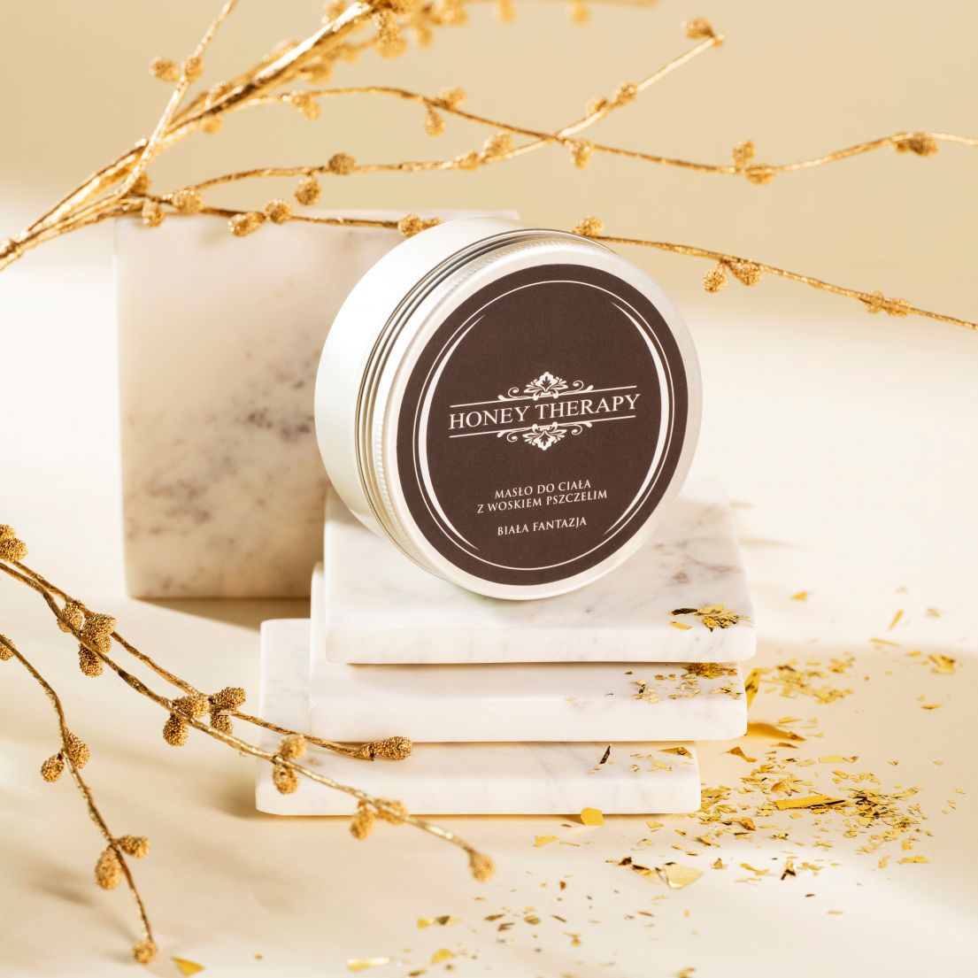 Masło do ciała serii Biała Fantazja to połączenie subtelnego zapachu piżma i wysokiej jakości składników takich jak wosk pszczeli, masło Shea i oleje roślinne. Masło nawilża, odżywia, działa ujędrniająco, regenerująco i przywraca skórze naturalny blask. Pozostawia na naskórku cienką warstwę lipidową o właściwościach natłuszczających. Regularne stosowanie spowolni proces starzenia się naskórka i jednocześnie zapewni długotrwały efekt pielęgnacji.