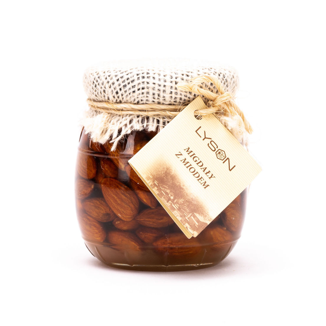 Charakterystyka produktu: w słoiczku znajdują się migdały zalane złocistym miodem wielokwiatowym, w procesie przygotowania użyto tylko naturalnych produktów bez wspomagaczy i bez sztucznych barwników