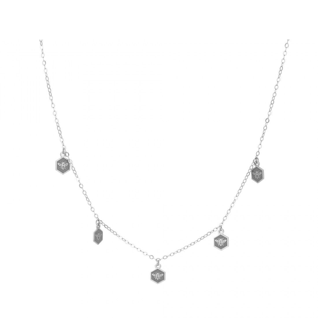 Biżuteria/ Naszyjnik z zawieszką pszczoła na heksagonie srebro rodowane