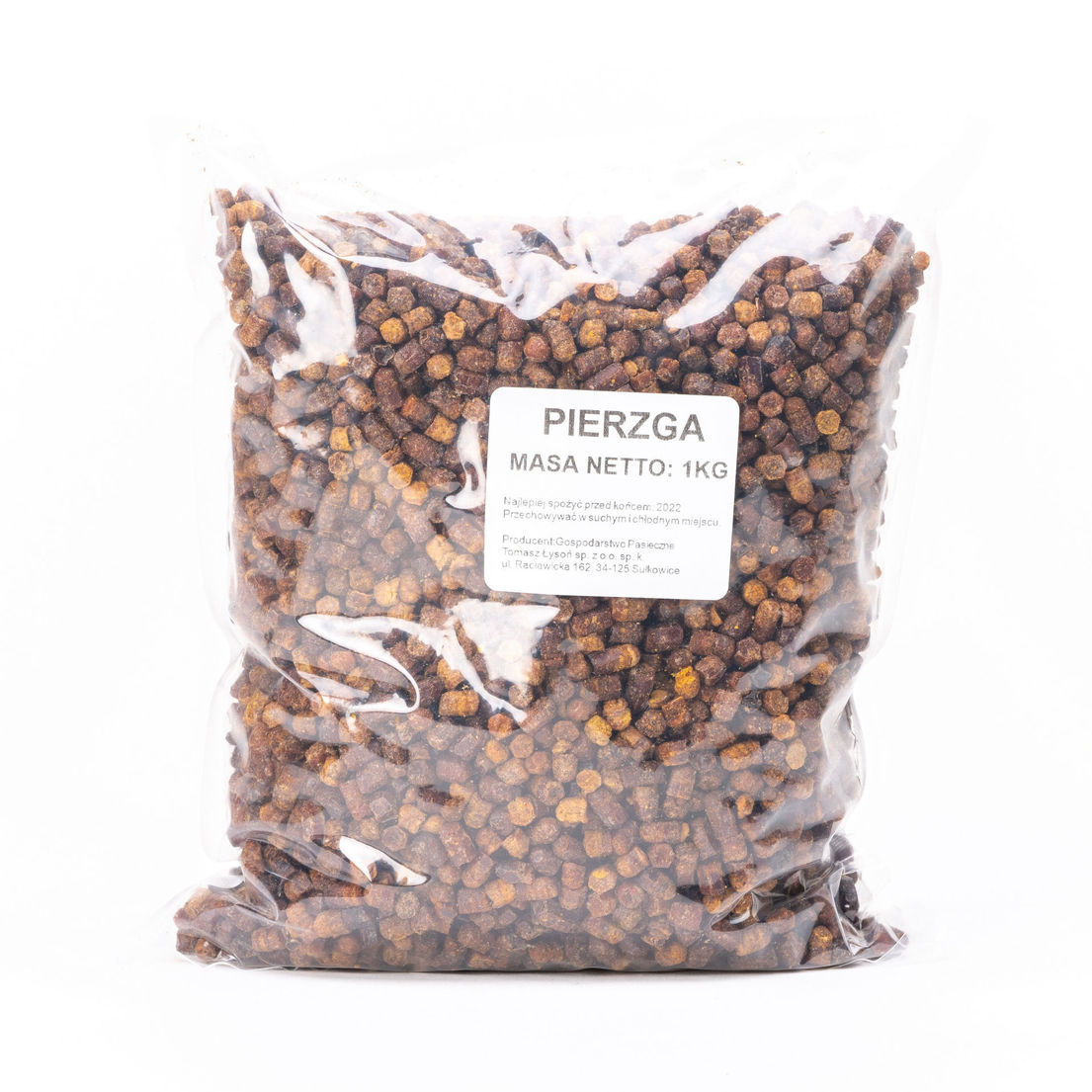 Minerały zawarte w pierzdze to m. in. sód, wapń fosfor i potas. Dodatkowymi składnikami są enzymy oraz aminokwasy. W przypadku niniejszego produktu dostępna jest w postaci 1 kilogramowych opakowań. Pierzga to tak naprawdę przetworzony przez pszczoły kwietny pyłek. W specjalnym procesie pyłek staje się bardziej przyswajalny dla żywych organizmów. Pierzga wytwarzana jest przez pszczoły na ich własny użytek dlatego jest ogromnie treściwa w składniki odżywcze.