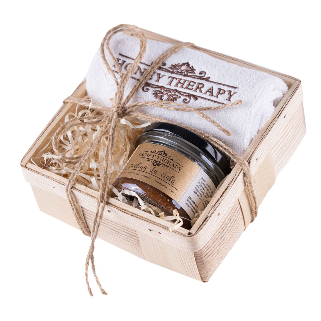 Zestaw zawiera: łubianka, peeling pomarańcza/chili, ręcznik z logo honey therapy, sianko