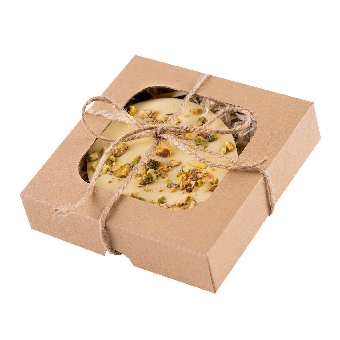 Cudowny smak i aromat belgijskiej białej czekolady w kształcie jajka z dodatkiem prawdziwego miodu wielokwiatowego, pięknie ozdobiony pistacjami, w naturalnym kraftowym pudełeczku to świetny prezent dla ukochanej osoby. Biała czekolada to źródło witamin D, E i K, a także witamin z grupy B. Działa ona kojąco na układ nerwowy – minimalizując stres a także pozytywnie wpływa na sprawność koncentracji, a do tego cudownie smakuje. Naturalnie, zdrowo i słodko.