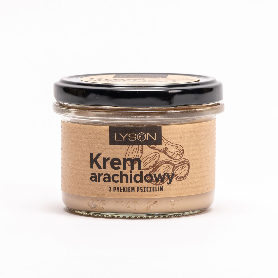 ORZECHY ARACHIDOWE (49,8%), cukier, MLEKO pełne w proszku, olej słonecznikowy, olej arachidowy, pyłek pszczeli (0,5%), kakao w proszku, emulgator: lecytyny [SOJA].