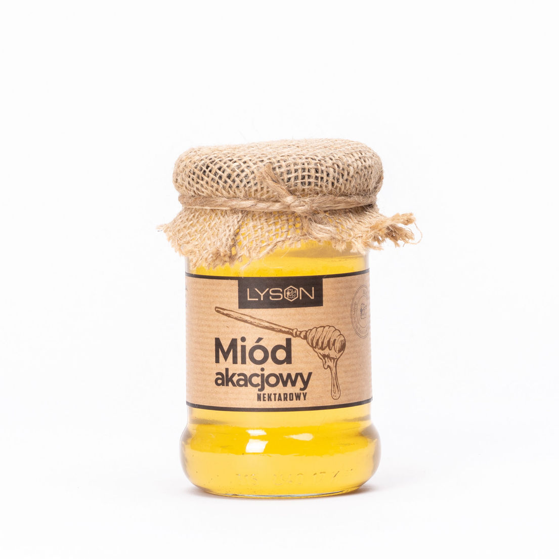 W toku procesu jego krystalizacji nabiera barwy biało kremowej, nie zmieniając przy tym właściwości jego składu i zawartych w nim składników odżywczych. Jest to jeden z bardziej popularnych rodzajów miodu. Miód akacjowy wspomaga odporność organizmu ludzkiego, dlatego idealnie pasuje do okresu jesienno - zimowego kiedy to jesteśmy podatni na różnego rodzaju infekcje bakteryjne. Jest odpowiedni również dla wsparcia naszego żołądka i nerek, oczyszcza organizm – tworząc barierę ochronną dla różnego rodzaju bakterii. Jest zalecany w okresach wzmożonego wysiłku fizycznego oraz po przebytych zabiegach, jako środek wspomagający regenerację organizmu.