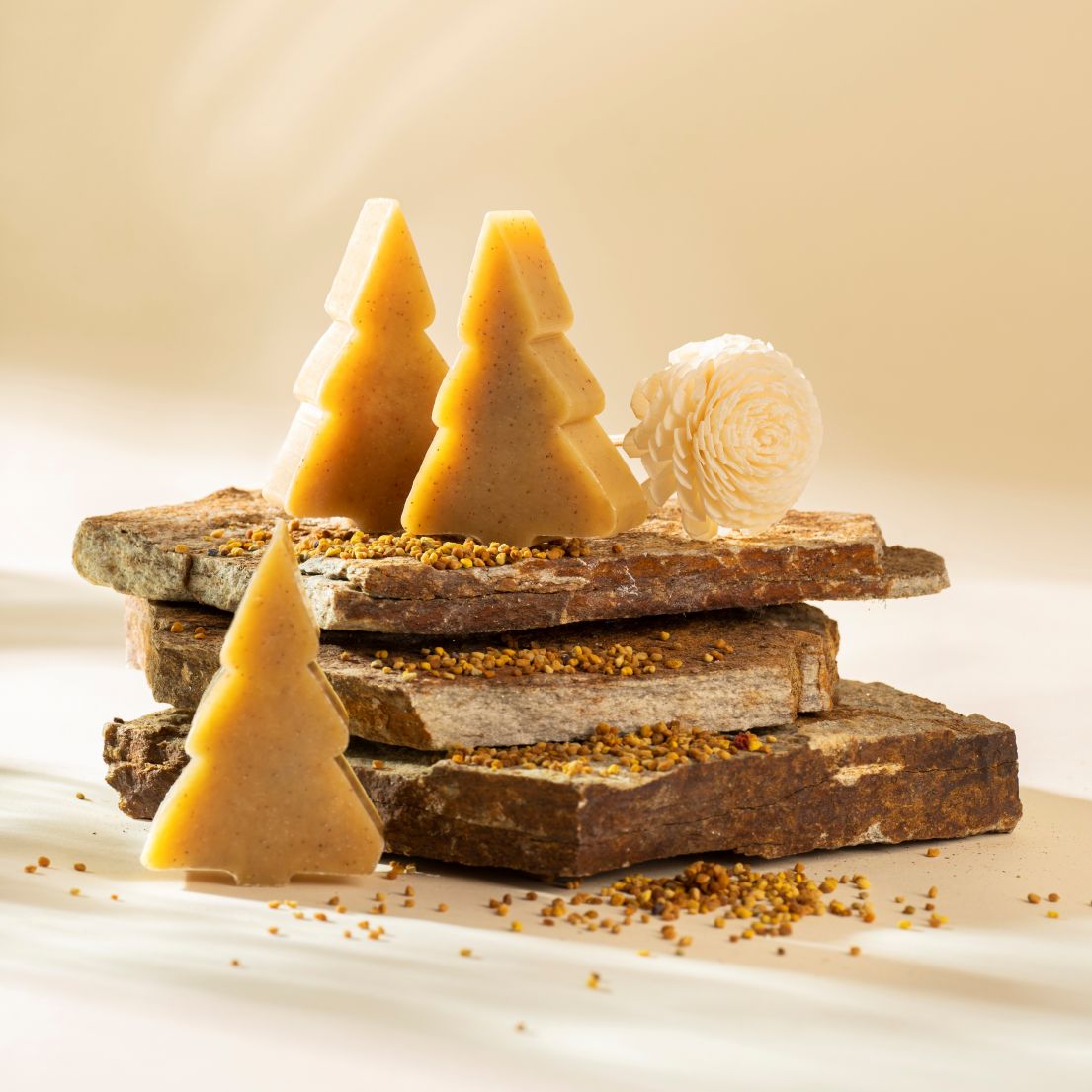 PYŁEK PSZCZELI - bogaty w witaminę E, C, witaminy z grupy B oraz fosfor , potas oraz beta-karoten i inne. Wykazuje również działanie przeciwbakteryjne, przeciwzapalne i łagodzące – czyli idealne dla skór naczyniowych, wrażliwych i trądzikowych. Odżywia skórę i włosy.