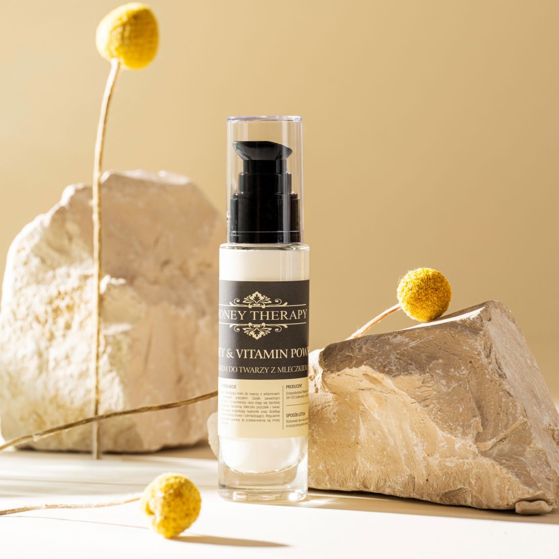 Lekki nawilżający krem do twarzy z witaminami i mleczkiem pszczelim. Dzięki zawartości witamin cera staję się bardziej elastyczna, nawilżona. Mleczko pszczele i kwas hialuronowy wygładzają naskórek oraz działają przeciwzmarszczkowo, nawilżająco i odmładzająco. Regularne stosowanie sprawia, że przebarwienia są mniej widoczne. Dzięki delikatnej konsystencji krem szybko się wchłania i nie pozostawia na skórze nieprzyjemnej tłustej warstwy. Można stosować go zarówno na dzień i na noc. Nie zatyka porów.