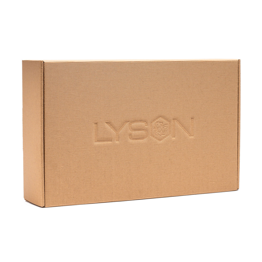 Opakowania na prezent/ Opakowanie tekturowe 400x250x100 tektura prążkowana z logo lyson