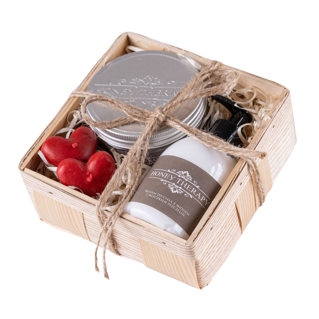 Zestaw zawiera: łubianka, peeling pomarańcza/chili, ręcznik z logo honey therapy, sianko