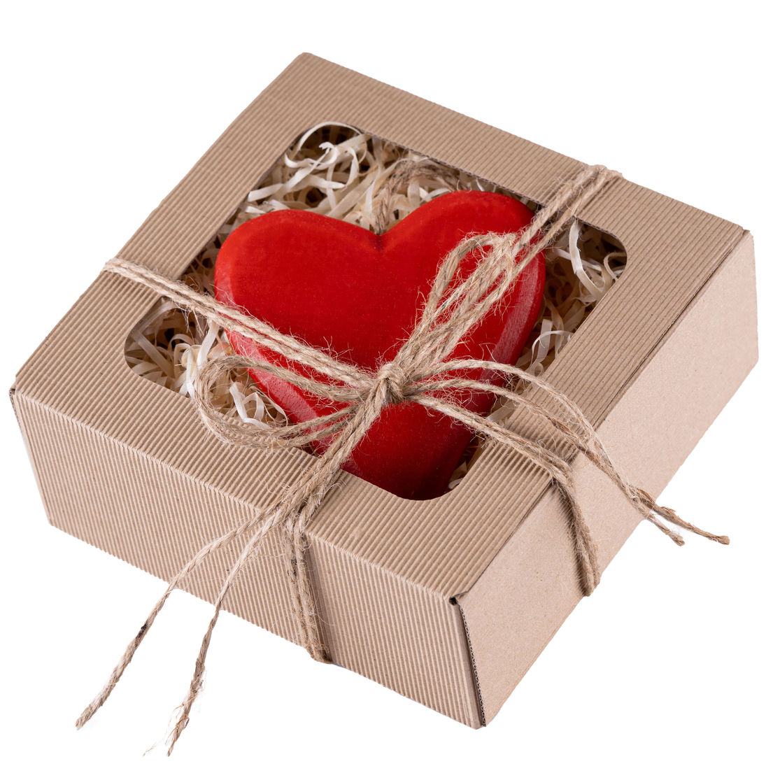 Zestaw zawiera: pudełko, serce zawieszka czerwona, sianko naturalne