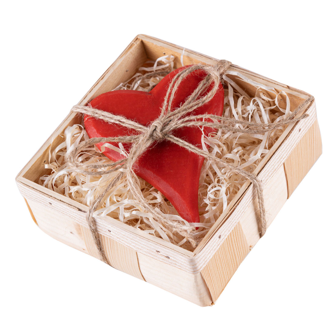 Zestaw zawiera: pudełko, serce zawieszka czerwona, sianko naturalne